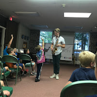 This week's Tuesday night presentation was by Modern Times Theater of Hartwick,Vermont. They entertained us with jokes and songs. Justin played the bicycle pump and the cornet (with a mute!) and Rose played a ukulele made from a real cigar box and a kazoo that she made herself! They were so talented!
